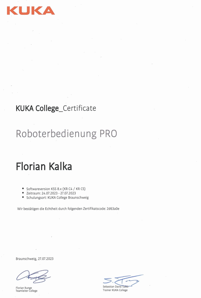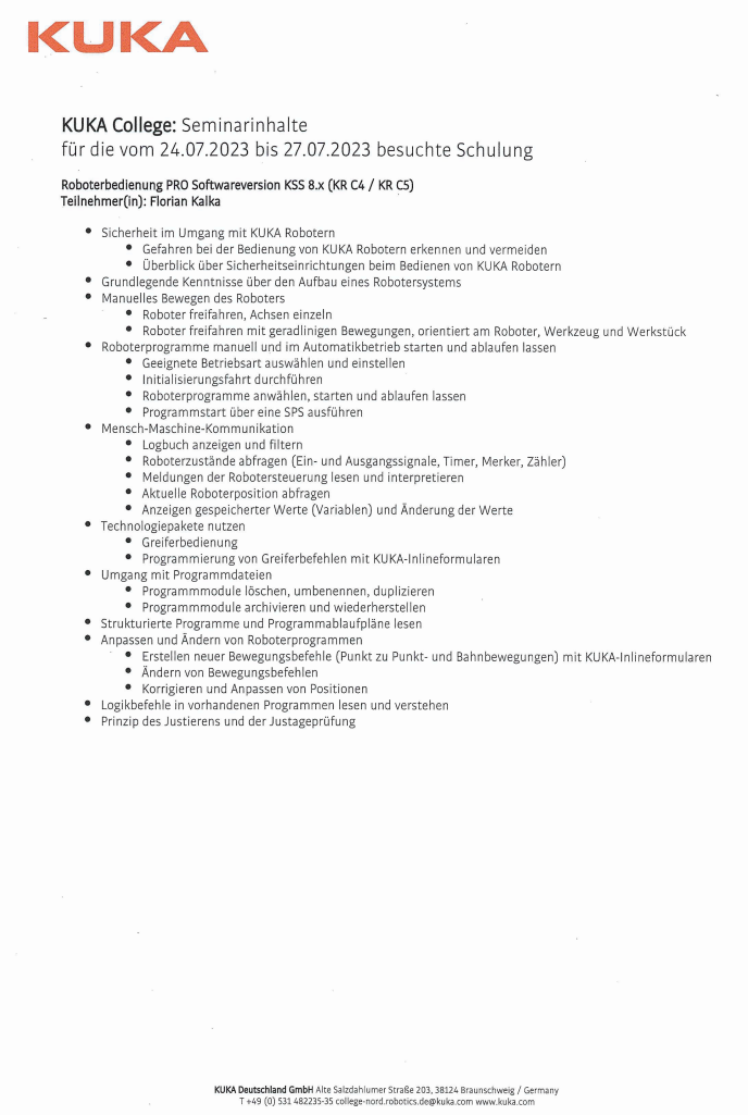 | 07/2023 | KUKA Roboterbedienung PRO (Inhalte) |